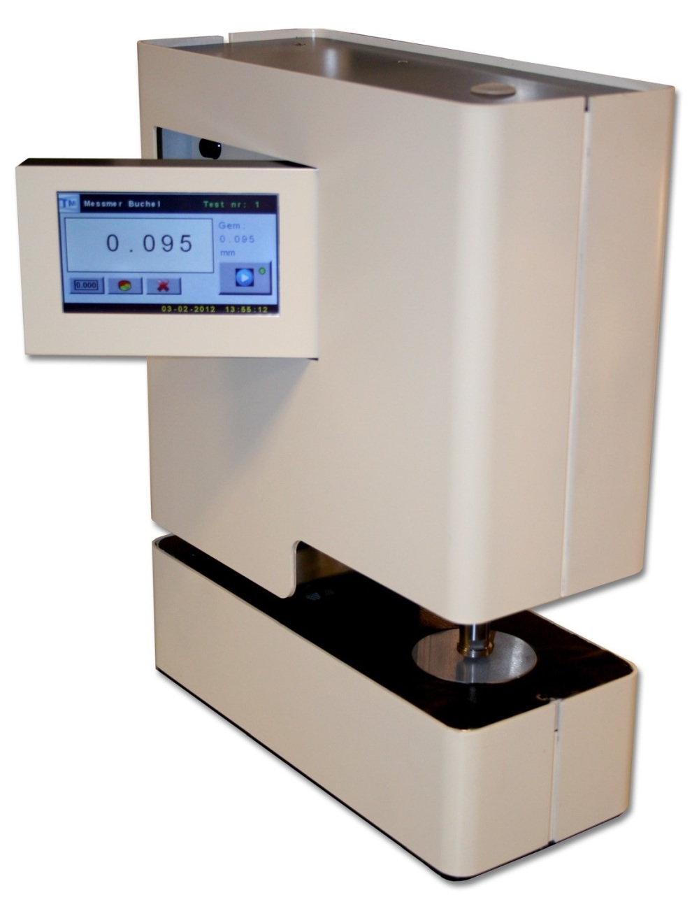 新型号的49-56型数显千分尺具有现代化外观设计结合了强大的机械设计和先进的电子技术,包括数字线性编码器,该系统带有功能全面的软件程序,用户控制测试速度、自动回零、自动采样检测;可选开口距离、可选的测量范围和可选的测试停留时间。可选自动进样选项,统计数据,多语言支持和校准记录。该设备可以满足任何ISO、ASTM、EDANA或其他国际标准。可对塑料片材、塑料薄膜、无纺布、各种纸张、瓦楞纸、纺织品等进行厚度测量。不同于传统的千分尺,49-56千分尺提供了一个悬臂式平衡系统,可以为测试头提供一个轻微的压力进行厚度测量,避免柔软的材料被挤压变形影响测量结果的准确性。此功能允许添加或去除砝码,可提供多重检测压力。